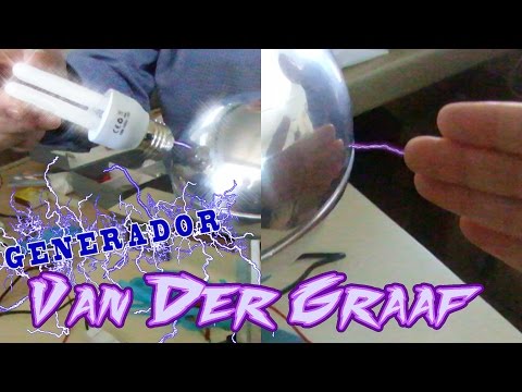 3 Experimento de las Descargas eléctricas; El generador acumula constantemente carga, cuando tiene un gran voltaje, pasa a la mano en forma de chispa. Si ponemos la mano a 1 centímetro de distancia, la chispa que salte tendrá 10000 voltios. No nos pasará nada porque aunque tenga un gran voltaje la intensidad es muy pequeña. La descarga de alto voltaje de un generador de Van Der Graaf puede excitar el fósforo de un tubo fluorescente y encender bombillas.